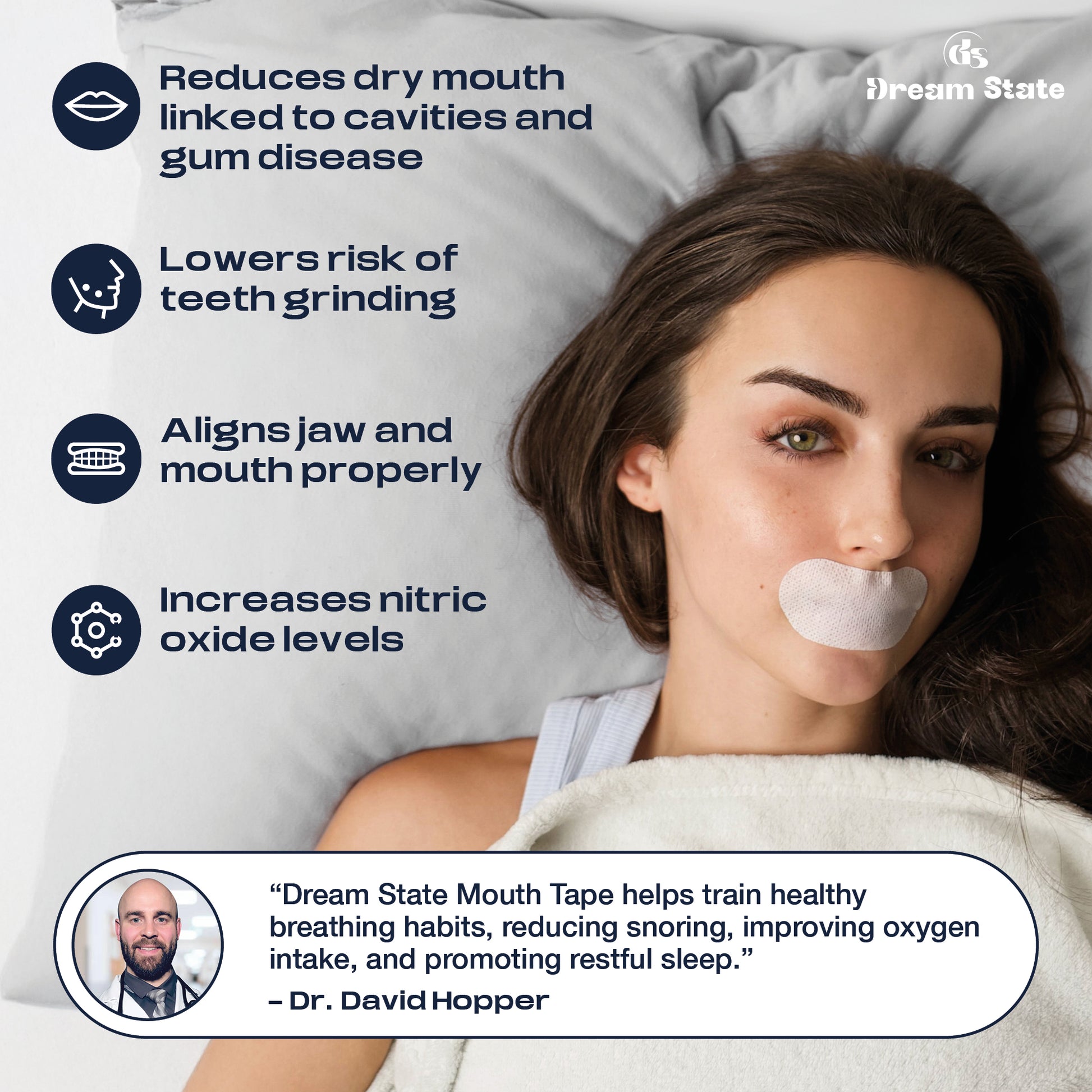 Our mouth tape can be taken off and reapplied multiple times without losing adhesion. No other mouth tape can do this.